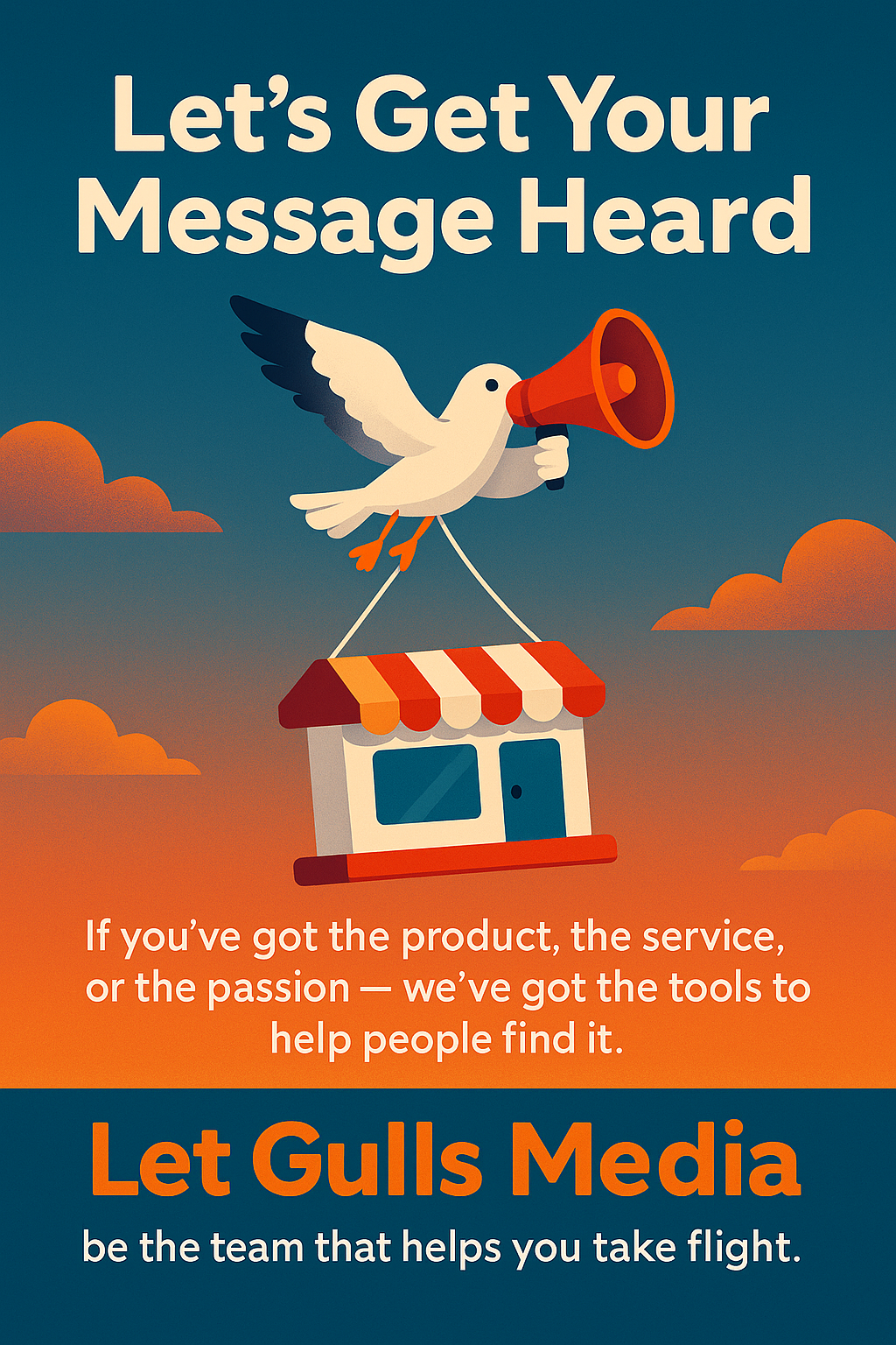 We chose the name Gulls because seagulls go everywhere. They're seen from coast to coast, always in motion, always spreading out. That’s exactly how we see our mission: to help small businesses spread their message, expand their reach, and take up the space they deserve in the digital world.